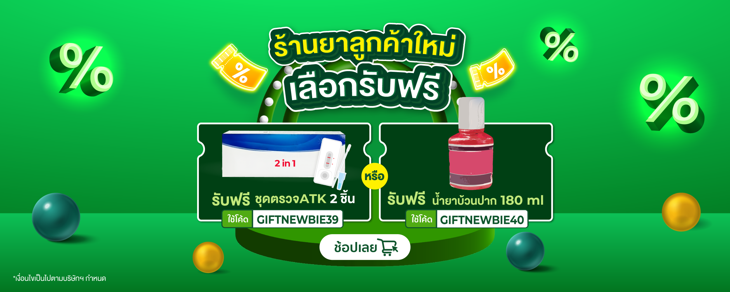- เลือกรับฟรี ATK Test Kit (2 in 1) 2 ชิ้น เมื่อซื้อขั้นต่ำ 1,000 บาท ใช้โค้ด GIFTNEWBIE39