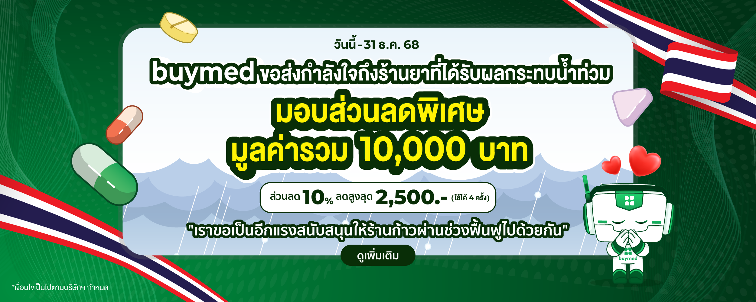 เพื่อสนับสนุนการฟื้นฟูธุรกิจร้านขายยาในพื้นที่ประสบภัย เรามอบส่วนลดพิเศษสำหรับการสั่งซื้อผ่าน buymed