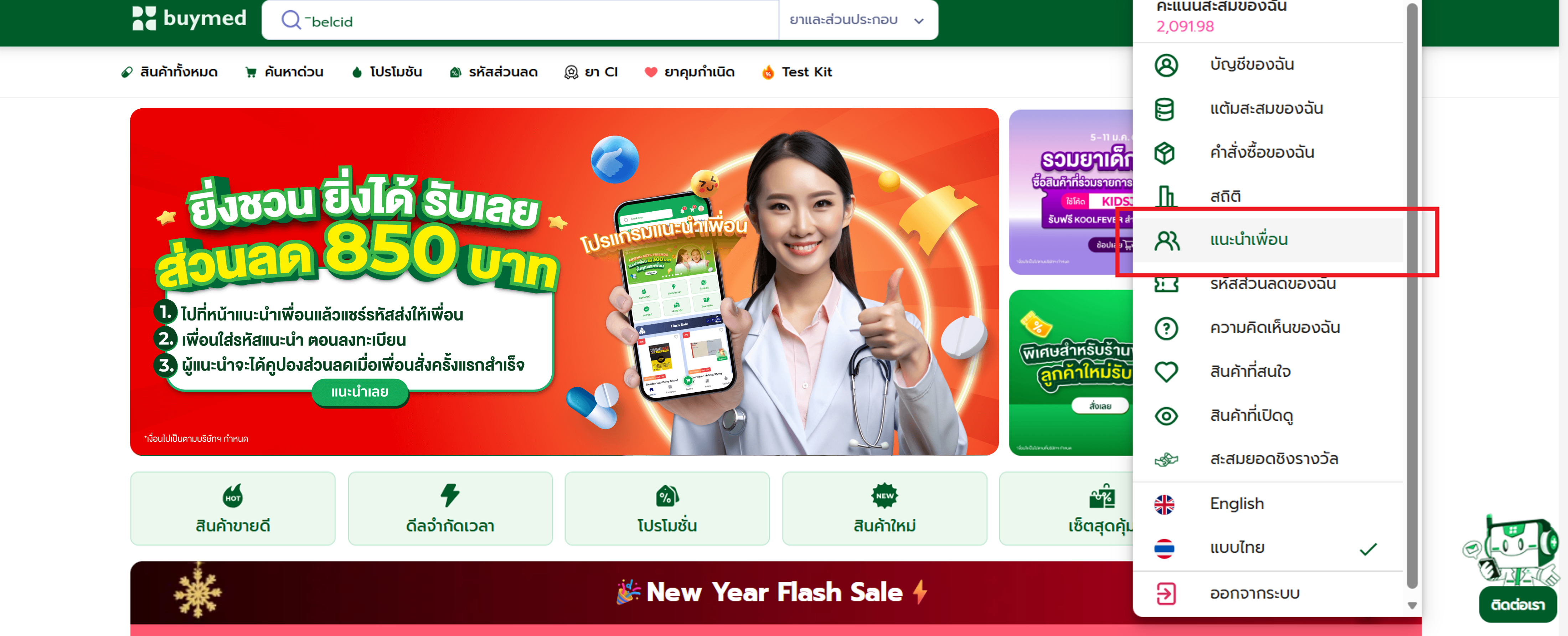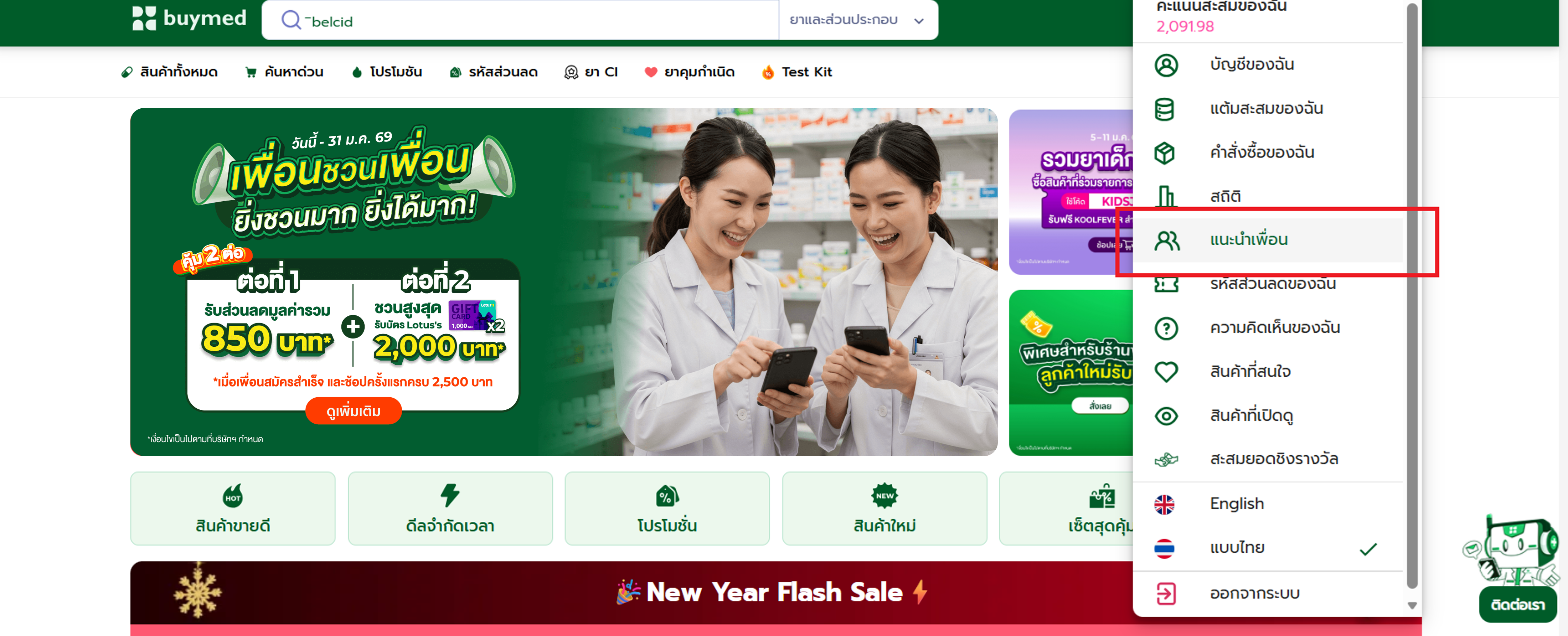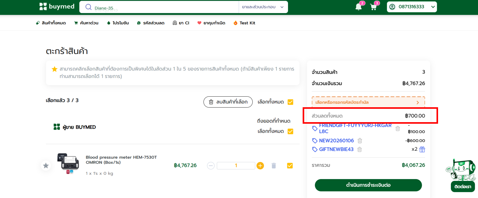 2. เมื่อเพื่อนสั่งซื้อครั้งแรกขั้นต่ำ 2,500 บาท จะได้รับส่วนลดเพิ่ม 100 บาท พร้อมกับส่วนลดลูกค้าใหม่ 600 บาท รวมเป็น 700 บาท
