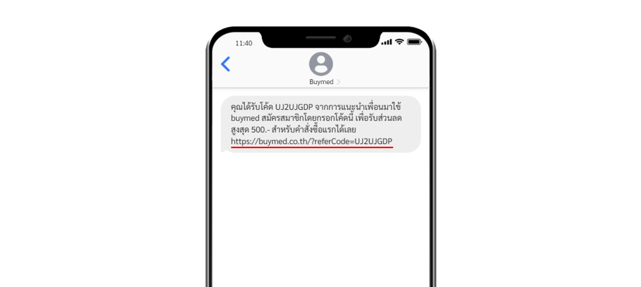 3. เพื่อนจะได้รับ SMS พร้อมลิงค์ที่มีรหัสแนะนำเพื่อน 8 หลัก สำหรับสมัครสมาชิก