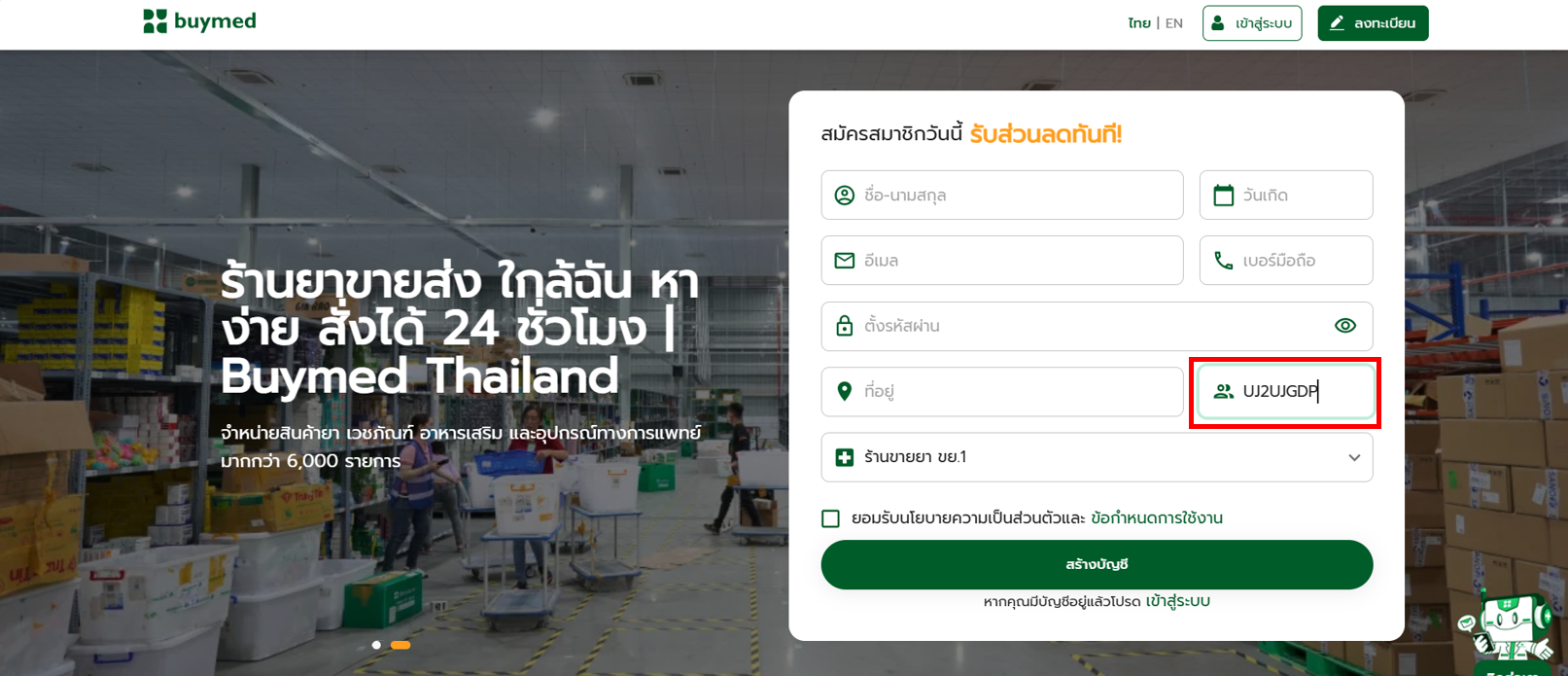 👉 หากผู้ถูกแนะนำไม่ได้กรอก รหัสแนะนำ ตั้งแต่ขั้นตอน สมัครสมาชิก ผู้แนะนำและผู้ถูกแนะนำ จะไม่ได้รับส่วนลดทั้งหมดข้างต้น