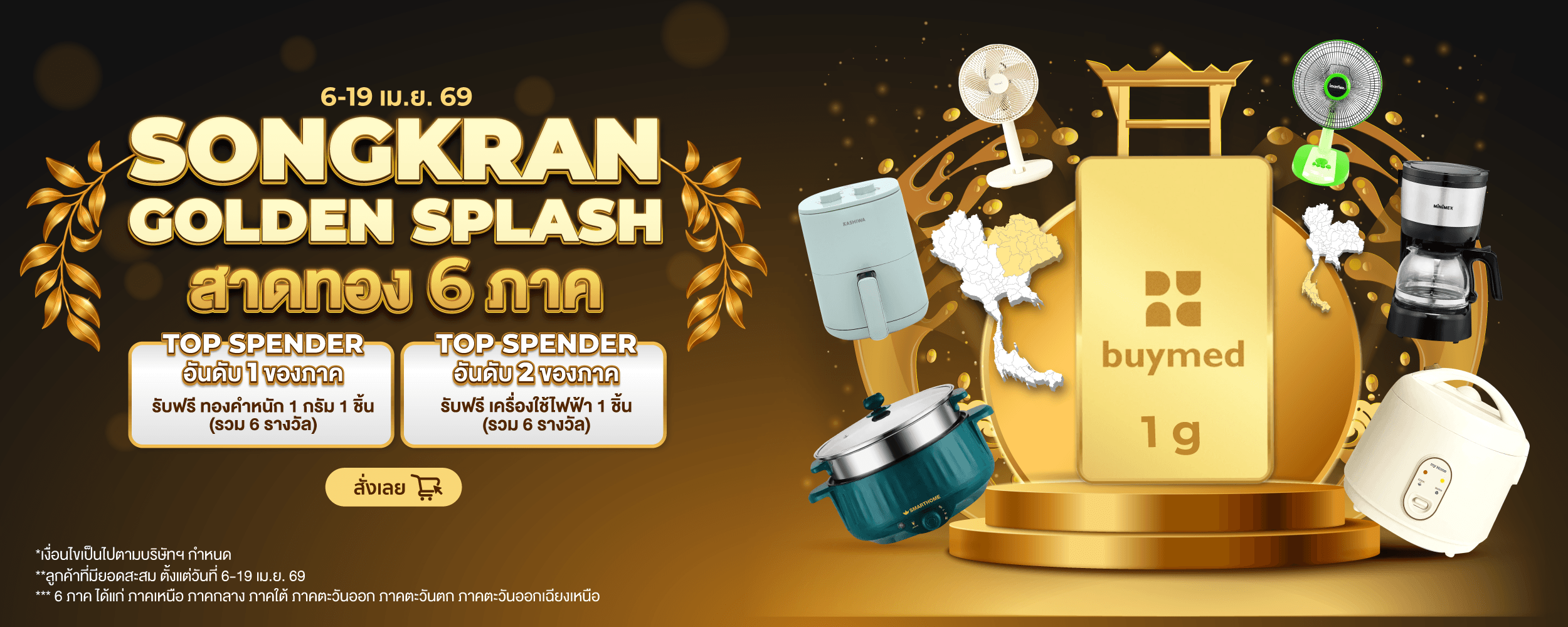 TOP spender อันดับ 1 : รับฟรี ทองคำ หนัก 1 กรัม จำนวน 1 รางวัล/ภูมิภาค (รวม 6 รางวัล)