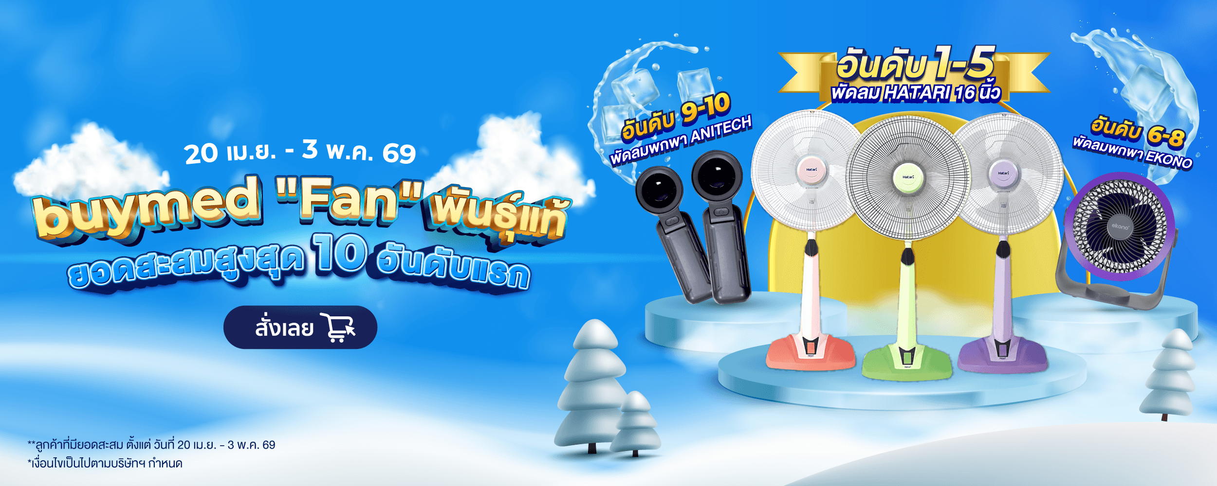 TOP spender อันดับ 1-5 : รับฟรี พัดลม Hatari 16 นิ้ว จำนวน 1 รางวัล (รวม 5 รางวัล)